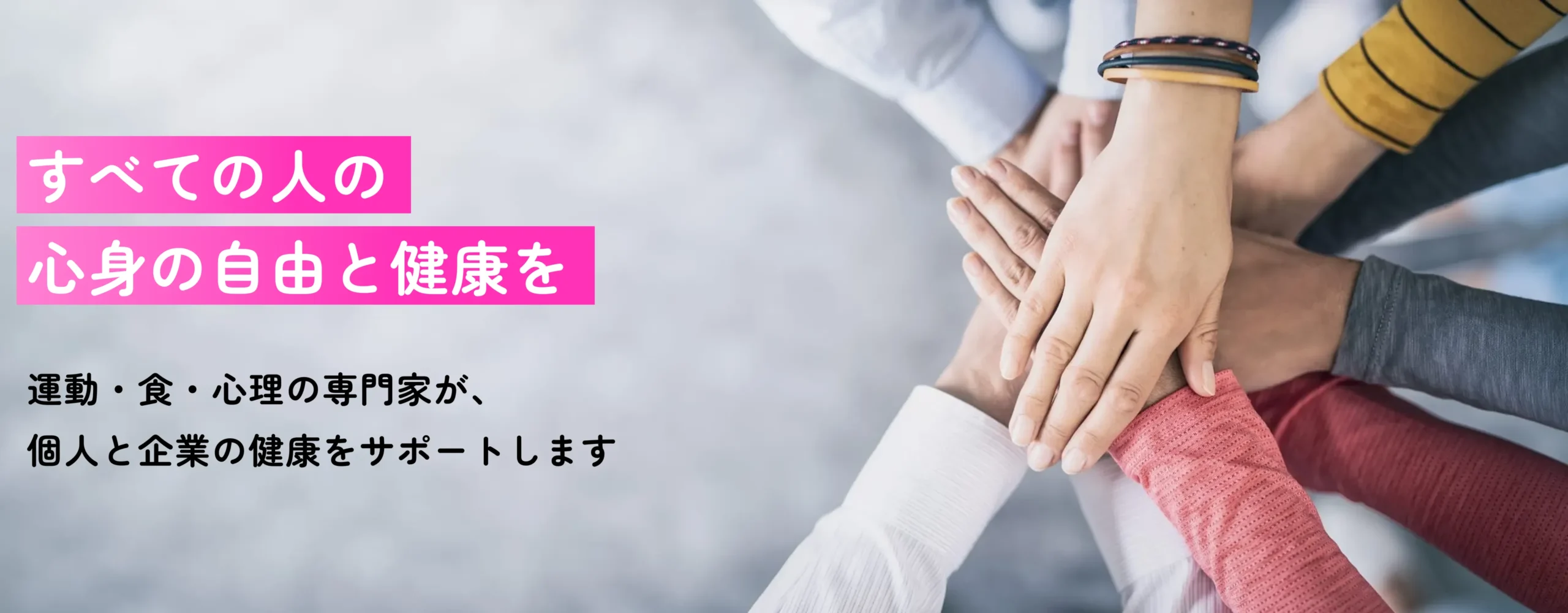 株式会社にじまるLIFEは、「すべての人の心身の自由と健康を」という理念のもと、運動・食・心理の3つの柱で、個人と企業の健康をサポートしています。